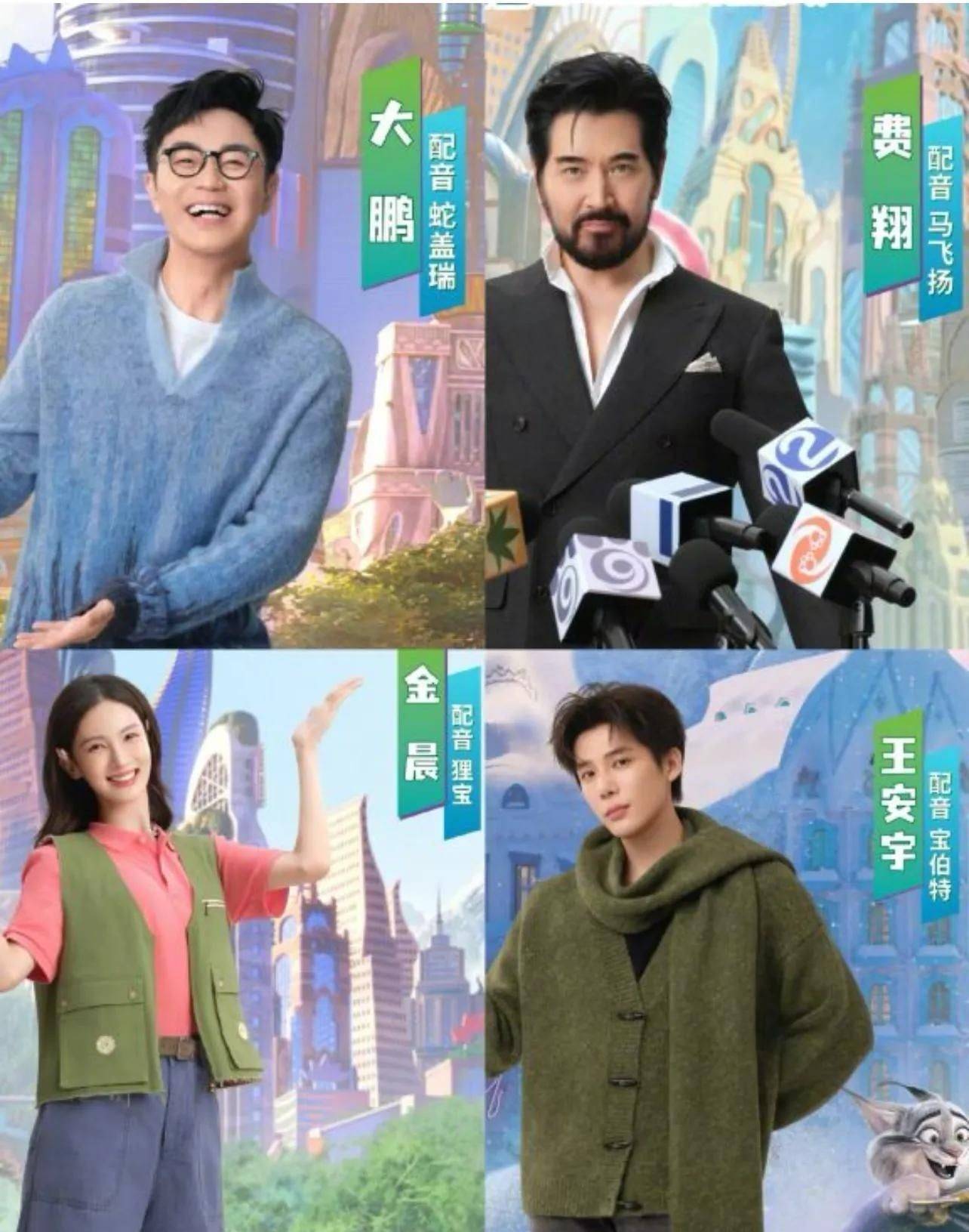 季冠霖继续为朱迪献声,张震也依旧担任尼克的配音,这组曾被无数观众誉为“灵魂之声”的黄金搭档总算得以保留。然而,新增的配音名单却令人瞠目结舌——费翔、大鹏、金晨、王安宇齐齐登场,仿佛是一场内娱流量与咖位的集中展示,被网友戏称为“明星拼盘大礼包”。